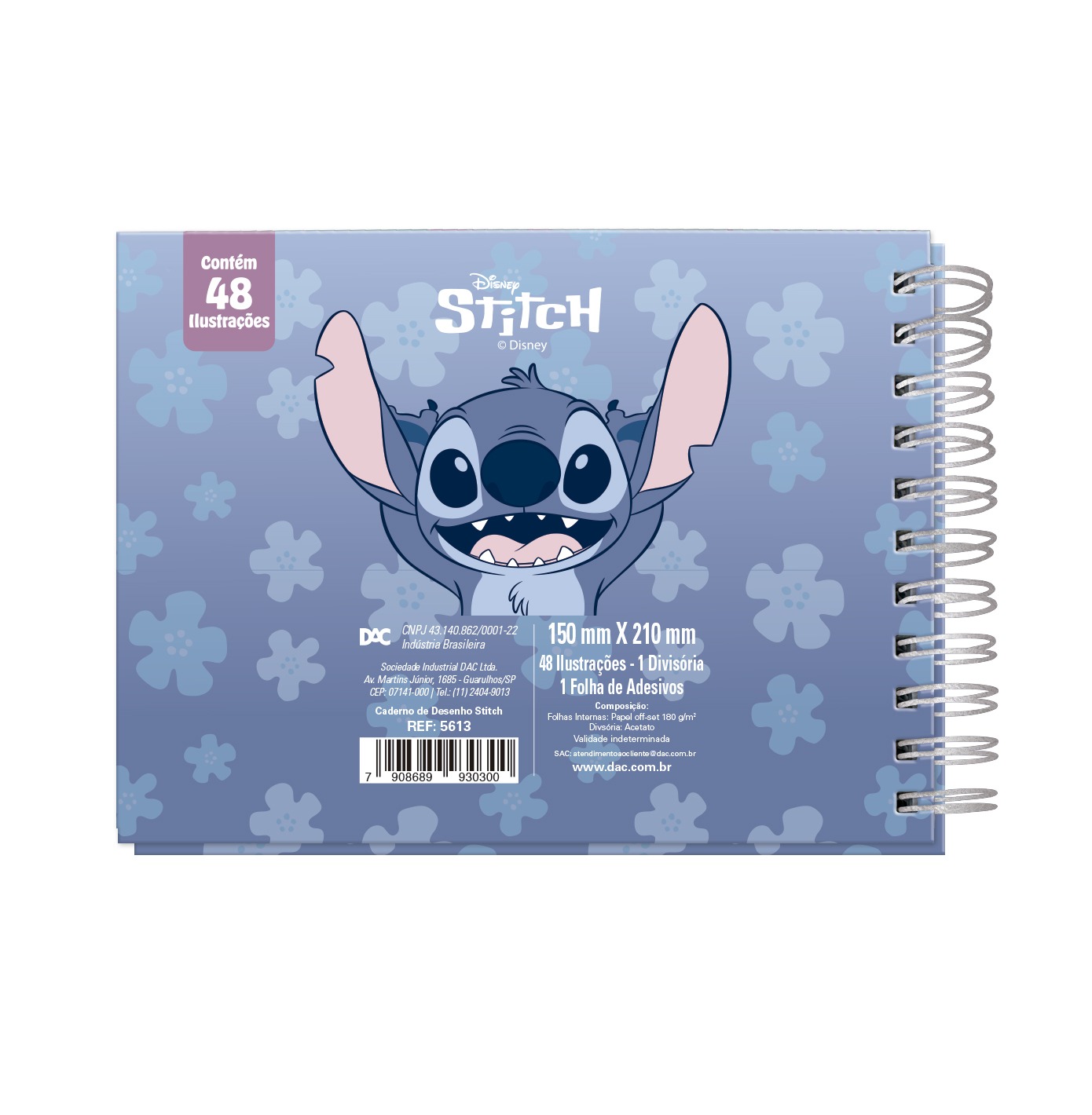 Detalhes: Possui 48 folhas com gramatura de 180g, 1 folha de acetato, cartela com 30 adesivos e espiral wire-o.