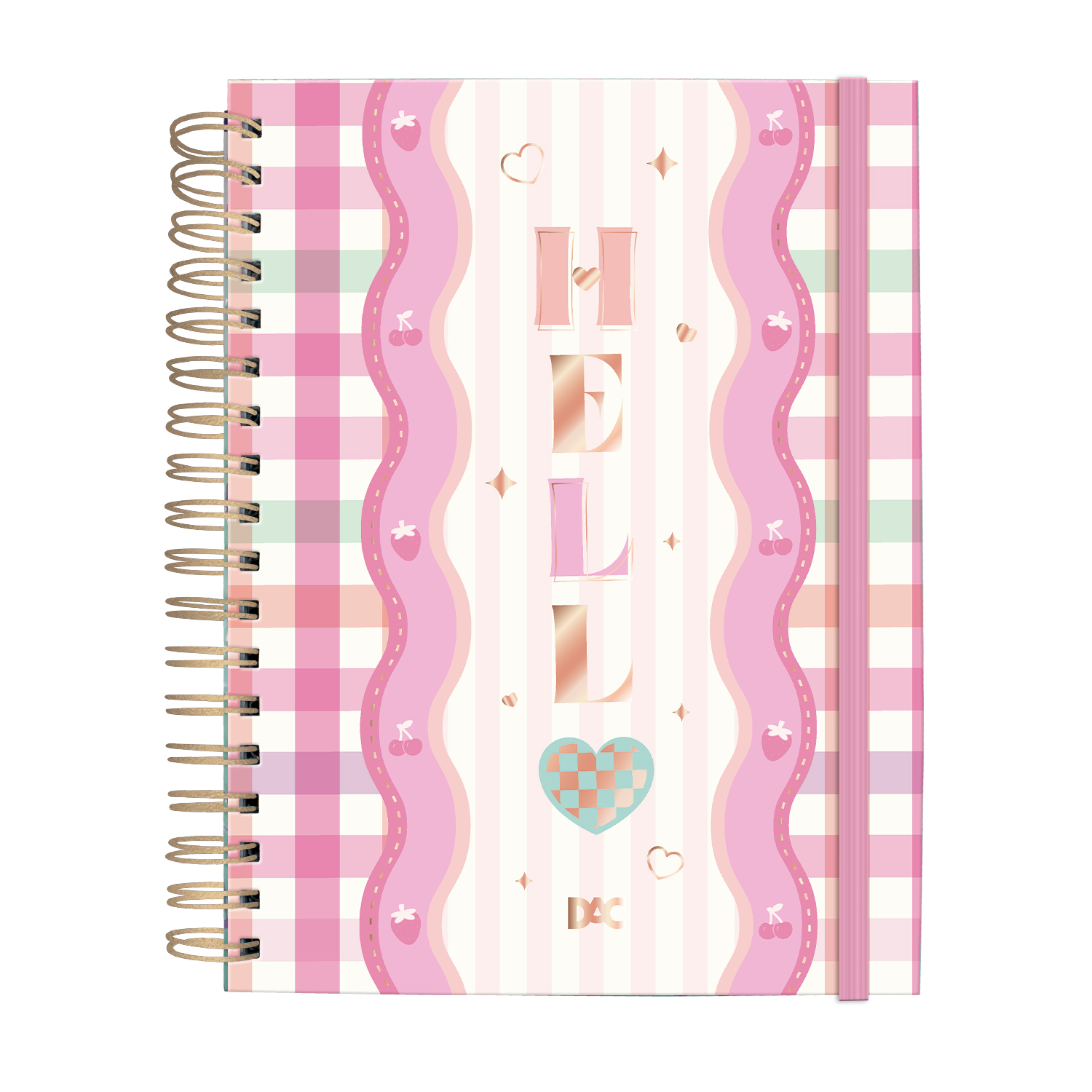Seu espiral de metal grosso é totalmente fixo à capa, garantindo durabilidade. O elástico mantém as folhas no lugar, evitando que balancem ou se soltem.