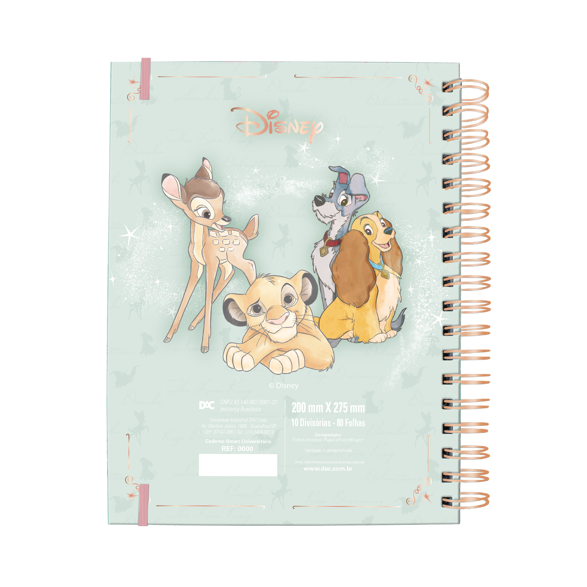 Caderno Smart super resistente com espiral de metal grosso fixo à capa para maior durabilidade. Conta com elástico que mantém as folhas firmes, evitando que balancem ou se soltem.