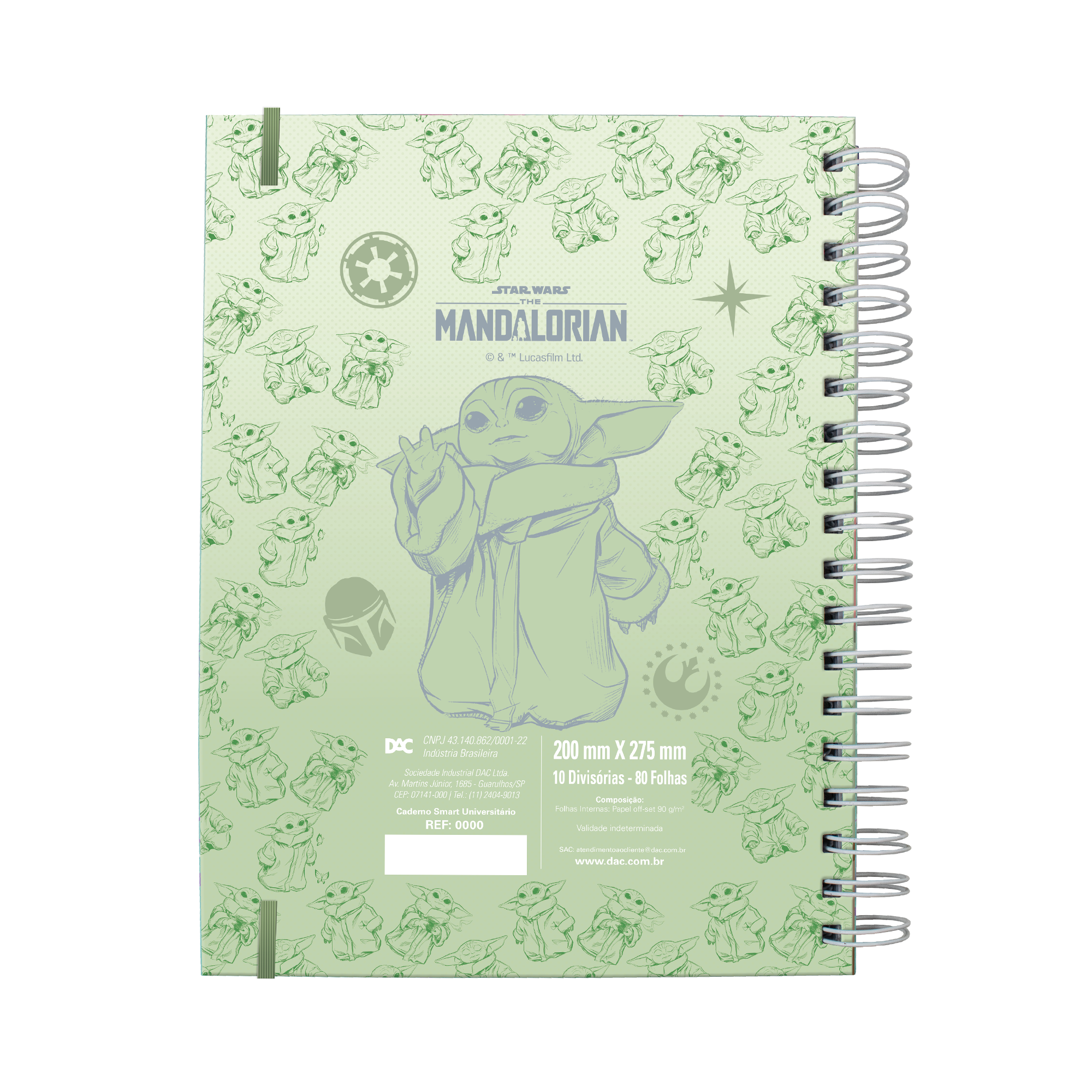 O Caderno Smart Universitário Star Wars Universitário em Wire-o combina beleza e sofisticação com resistência excepcional e toda a fofura do Grogu de The mandalorian.