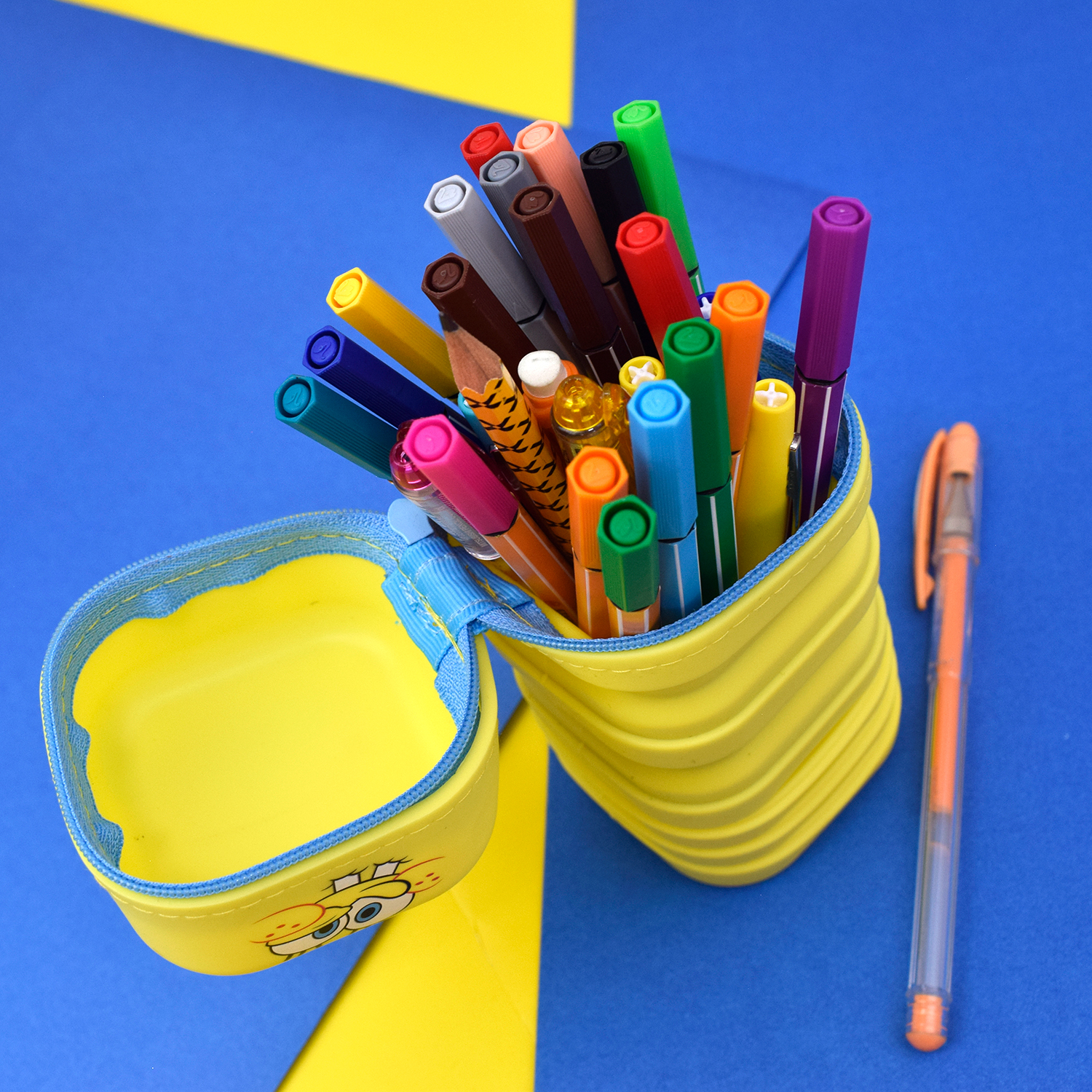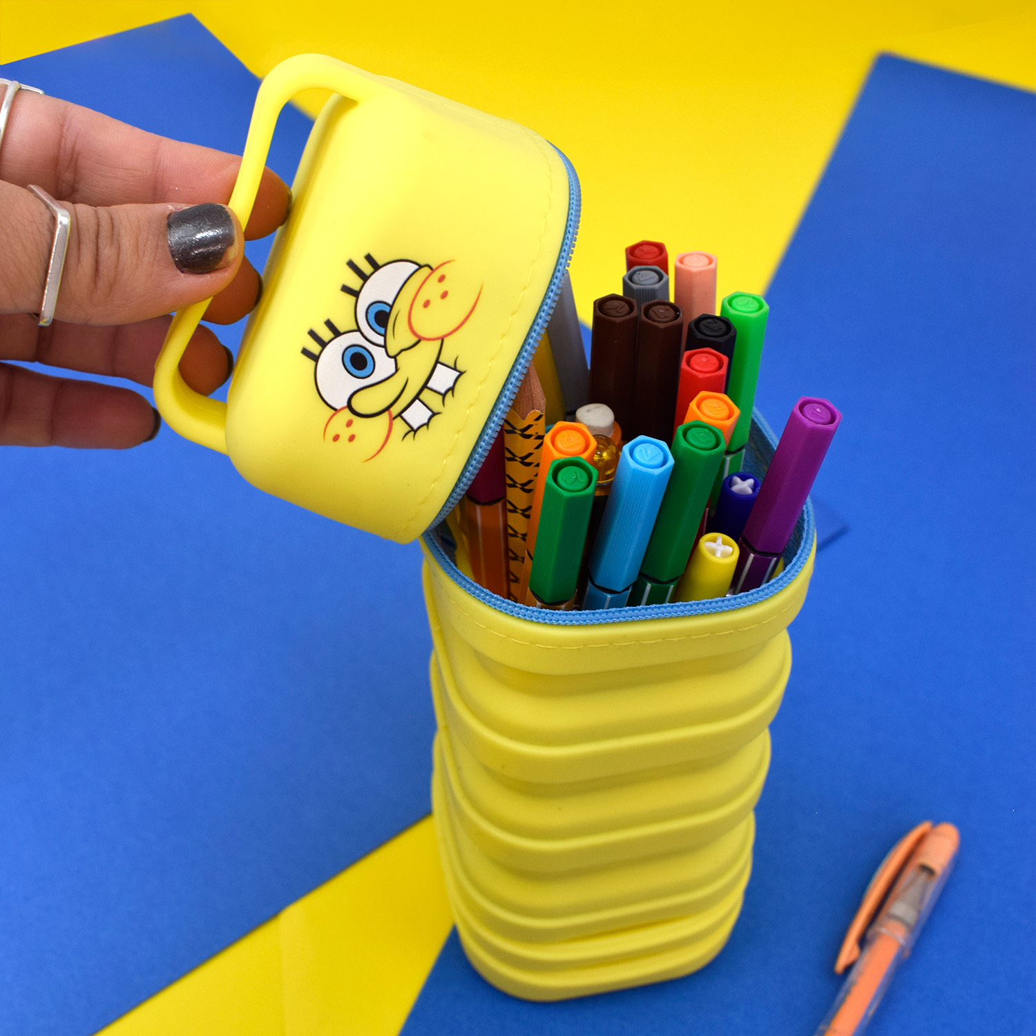 Estojo Sanfonado DAC Bob Esponja – Silicone Flexível e Base Porta-Caneta