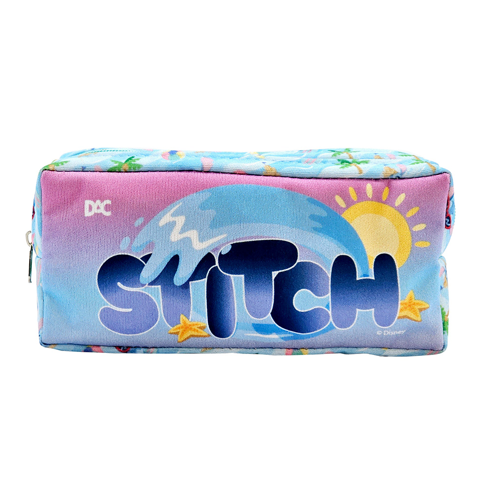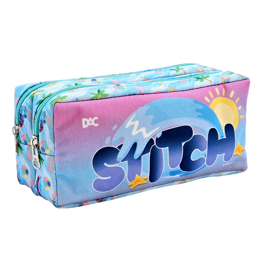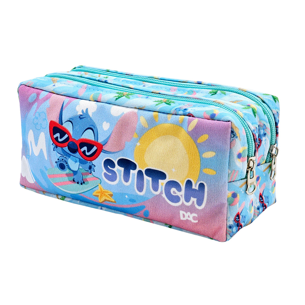 É um modelo de estojo ótimo para escola com material de tecido super resistente e com fechamento em zíper.