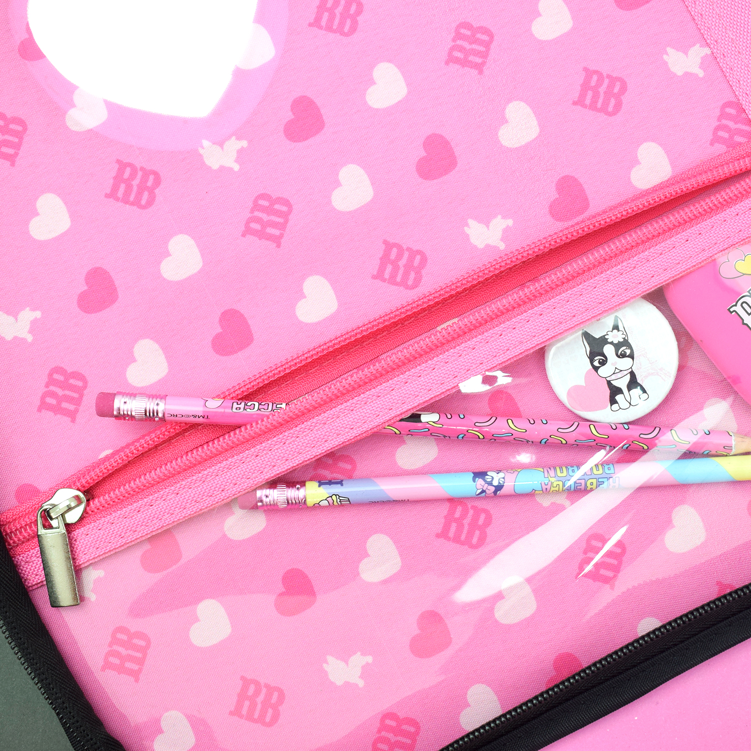 Tem um design requintado, cheio de detalhes com aplicação de costura, logo em metal, e chaveiro Rebecca Bonbon.