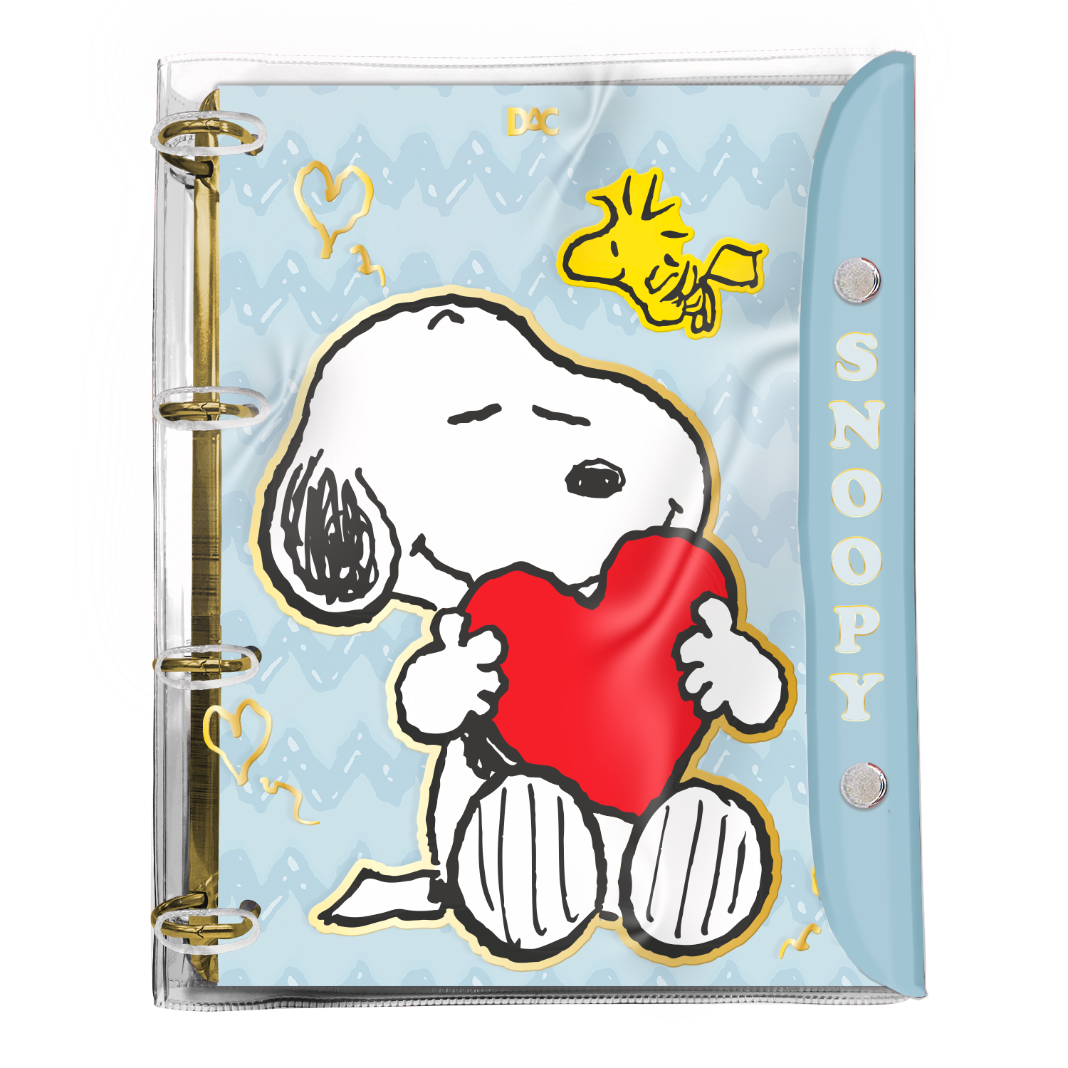 Fichário Universitário PVC Cristal com botão, perfeito para quem busca o tamanho compacto de um caderno com a versatilidade de inserir ou retirar folhas facilmente.