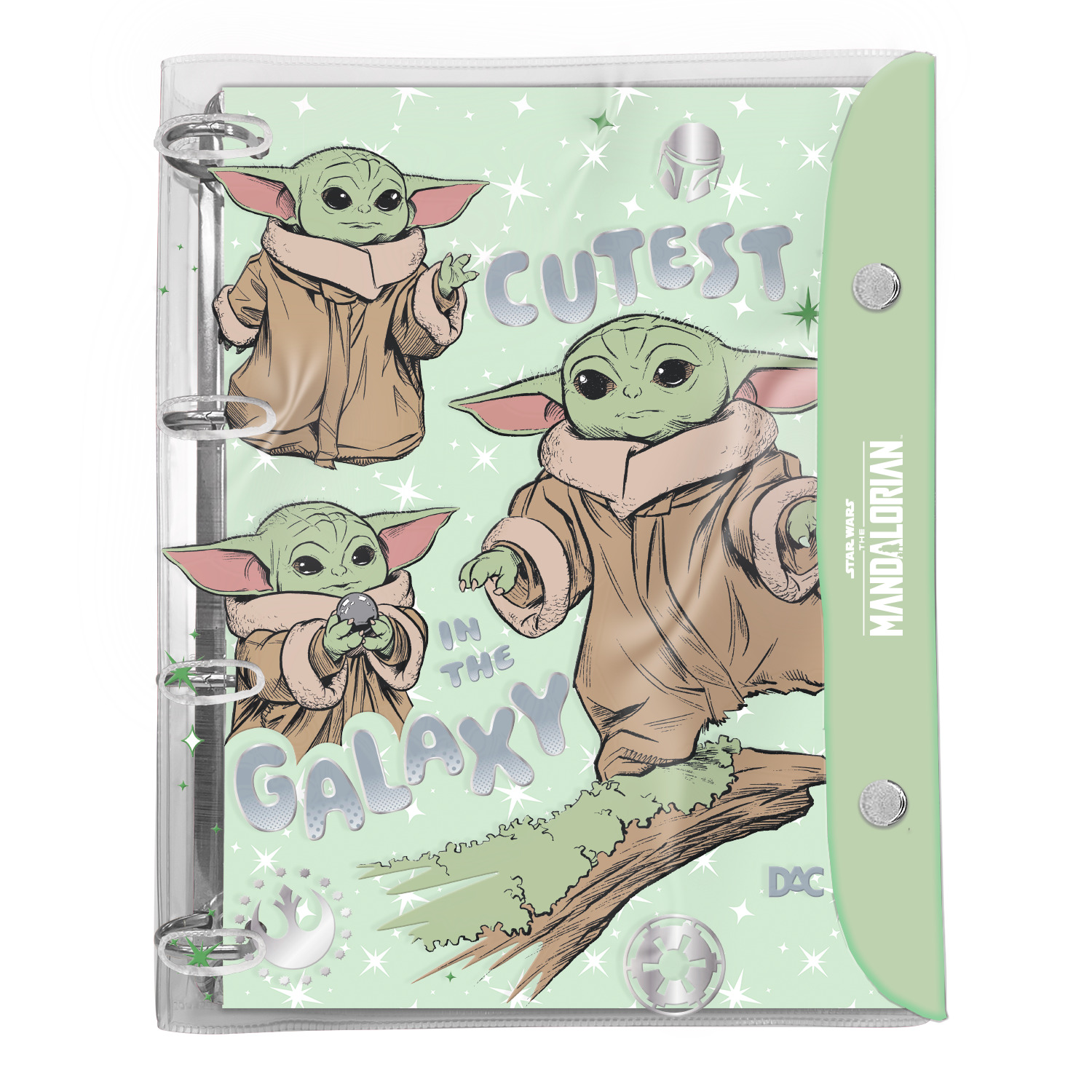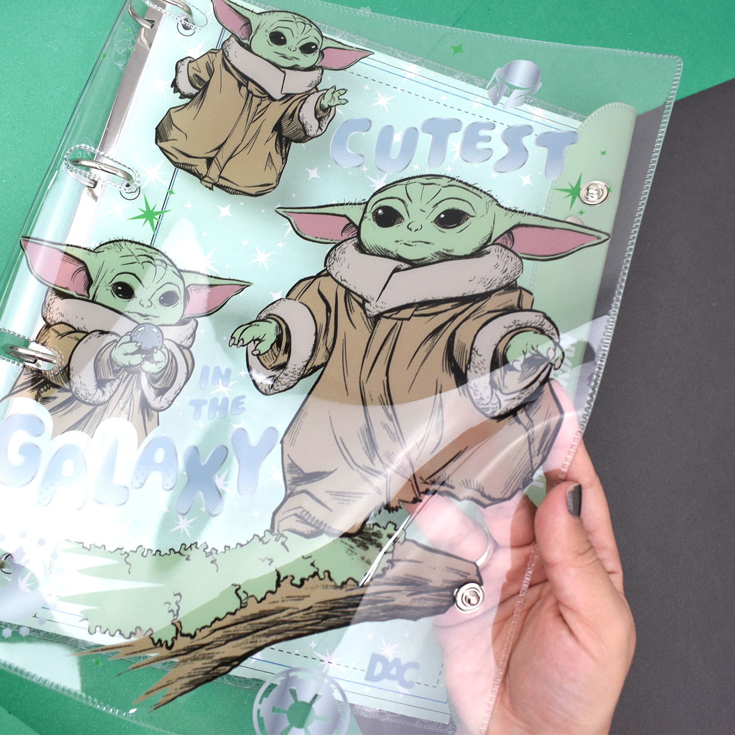 Fichário Universitário PVC Cristal com botão, perfeito para quem busca o tamanho compacto de um caderno com a versatilidade de inserir ou retirar folhas facilmente.