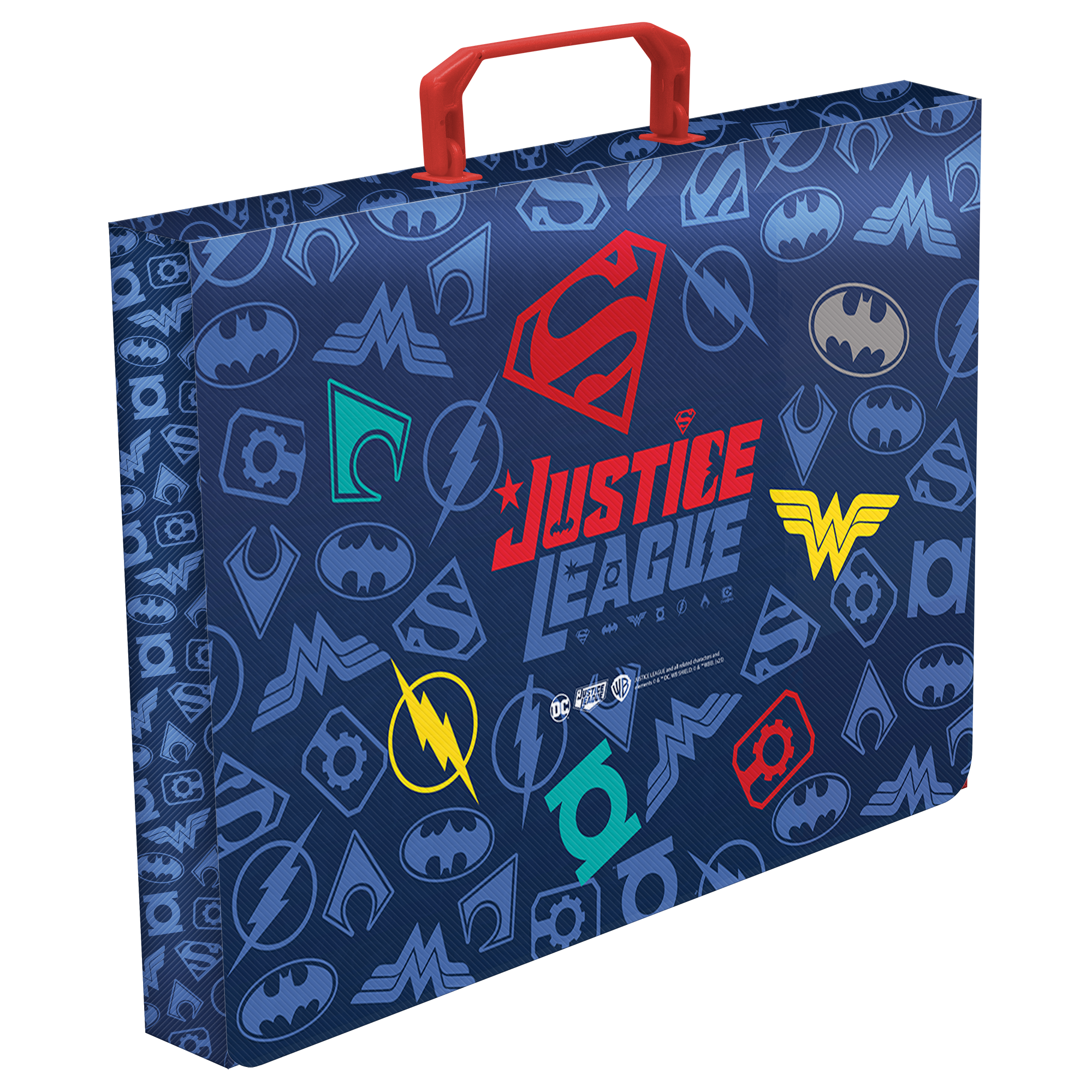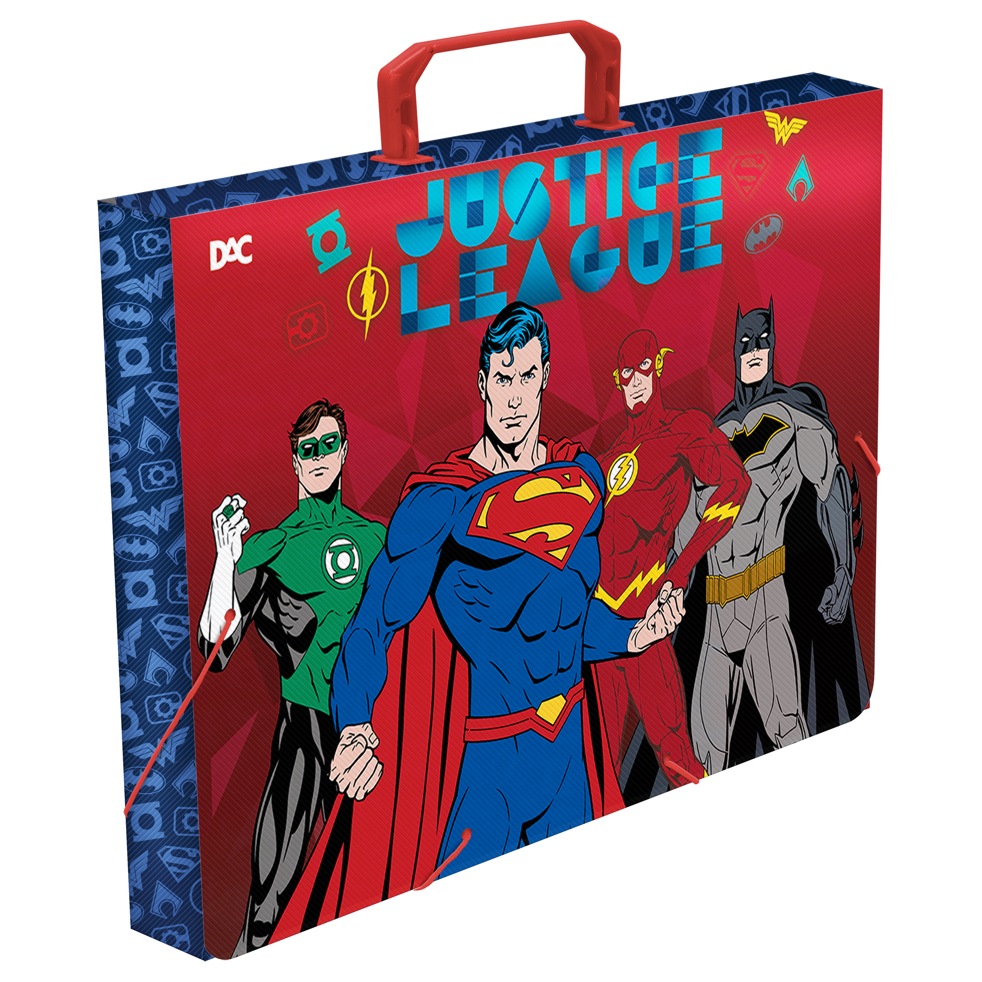 Maleta com tamanho ideal para guardar materiais infantis nos formatos ofício, A4 ou menores. Prática e fácil de transportar para a escola ou qualquer lugar, protegendo os itens contra amassados.