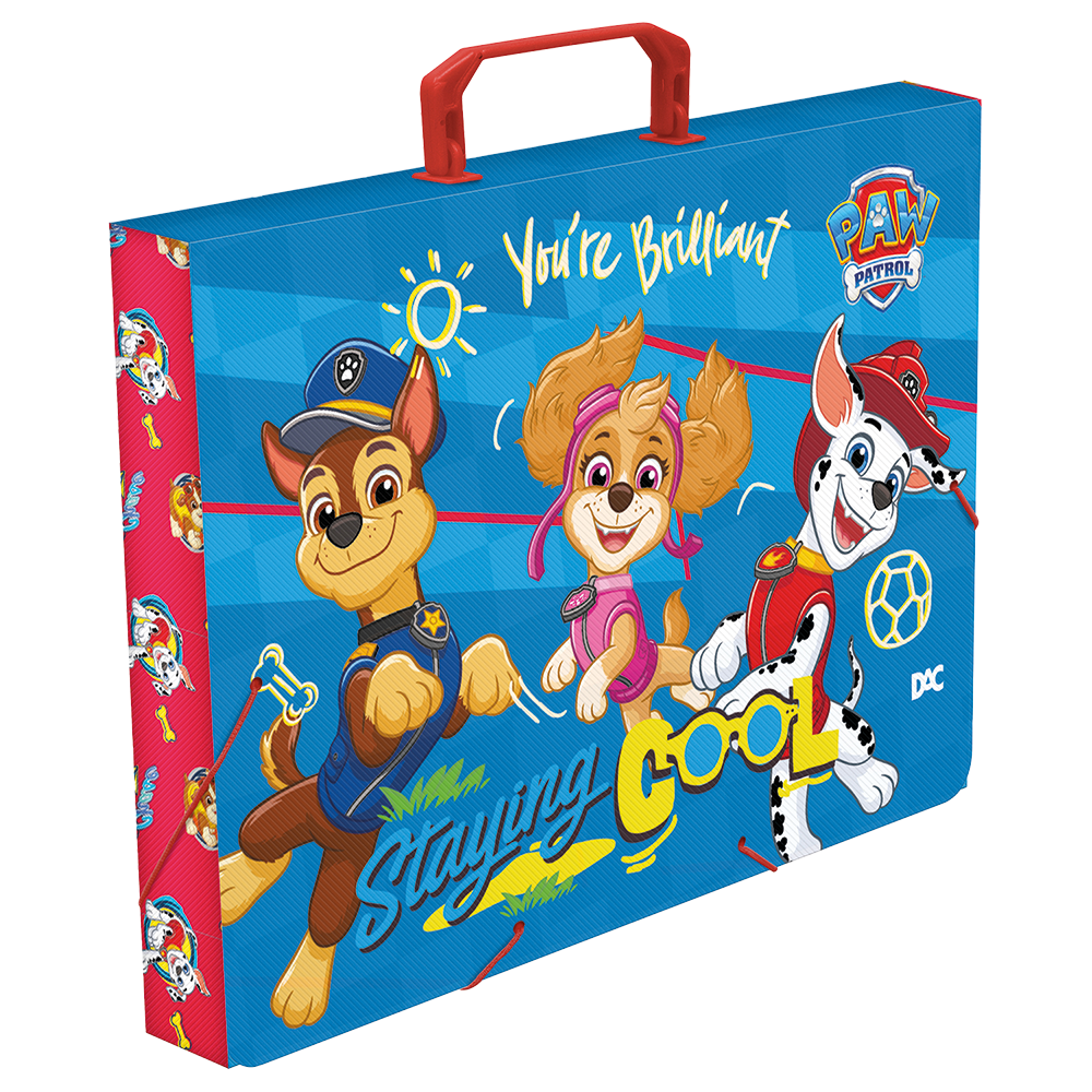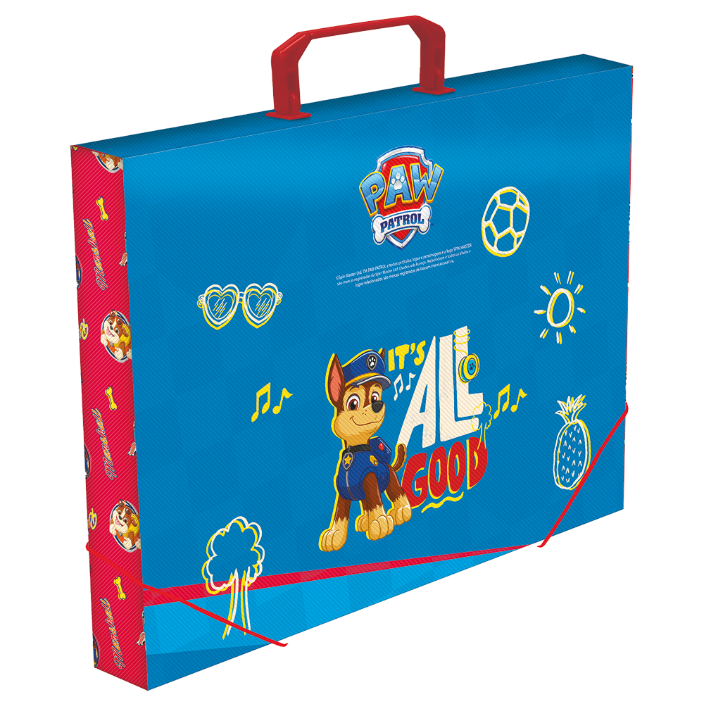 Maleta com tamanho ideal para guardar materiais infantis nos formatos ofício, A4 ou menores. Prática e fácil de transportar para a escola ou qualquer lugar, protegendo os itens contra amassados.